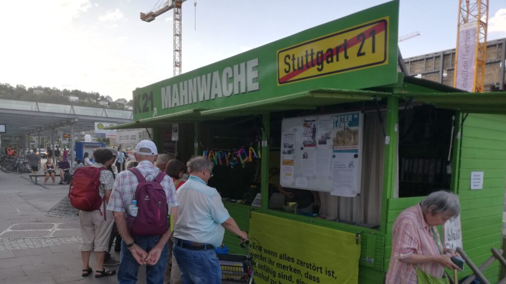 Bezeichnend war, dass nach der Veranstaltung der örtlich gut bekannte Verkehrsexperte der CDU und Befürworter des Projektes im Gespräch zu mir meinte, dass die Kommunikationspolitik der DB-Netz katastrophal sei – nun ja, das kann man so sehen. Ich meine aber, dass die DB Netz hier ein Projekt plant, bei dem die Öffentlichkeitsarbeit strategisch perfekt konzipiert ist. Diesbezüglich können wir in Frankfurt von euch in Stuttgart wohl einiges lernen, wie auch die Ende April erfolgte erste Vorführung des Dokumentarfilms „Das trojanische Pferd“ von Klaus Gietinger gezeigt hat. Diese war übrigens besser besucht als die oben genannte Podiumsveranstaltung.