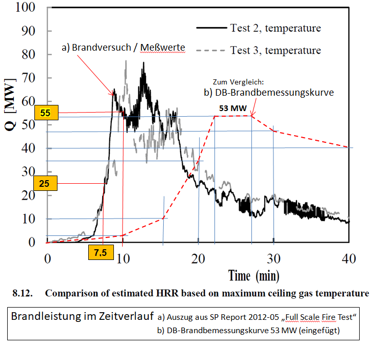 Legt man für die Auslegung der Brandschutzmaßnahmen die „DB-Bemessungsbrand für S-Bahnen und gemischten Reisezugverkehr“ von 53 MW3 zugrunde, dann ergeben sich nachfolgende Betrachtungen und Berechnungen.