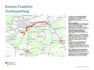 Bezug: Vortragsfolien von Alexander Lanz, Referat E 13 vom 8.2.2019, beinhaltend die Darstellung des Ausbauumfangs für den Knoten Frankfurt (Folie 16) und das NKV-Bewertungsergebnis (Folie 17).“ [3]
