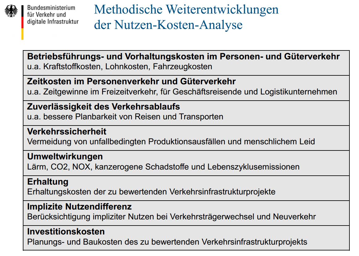 Zugrunde liegt der NKU das Methodenhandbuch zum Bundesverkehrswegeplan 2030 in der Fassung vom März 2016.