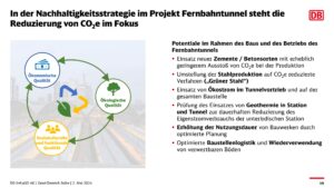 Bezüglich der zu erwartenden CO2-Emissionen des Fernbahntunnel argumentiert man nun aus der Not heraus damit, dass bei dem Projekt zementfreier Beton und „grüner“ Stahl zum Einsatz kommen würden. Ob damit tatsächlich die klimapolitisch notwendige Reduzierung von CO2-Emissionen voran getrieben wird, muss aber als fragwürdig bezeichnet werden. Dieses ergibt sich aus dazu notwendigen industriellen Vorprozessen, um z.B. „grünen“ Wasserstoff herzustellen. Die hierfür notwendigen Ressourcen müssten aber gleichfalls in die CO2-Bilanz einfließen. Außerdem fragwürdig ist, inwieweit sich diese industriellen Verfahren in den nächsten Jahren zur Marktreife im Sinne von wettbewerbsfähig entwickeln werden[7]. Sicher ist jedenfalls, dass dieses – wenn überhaupt – nur zu wesentlich höheren Kosten möglich wäre. In jedem Fall würden sich das natürlich nicht nur auf die Projektkosten, sondern dem entsprechend auf den NK-Faktor niederschlagen.