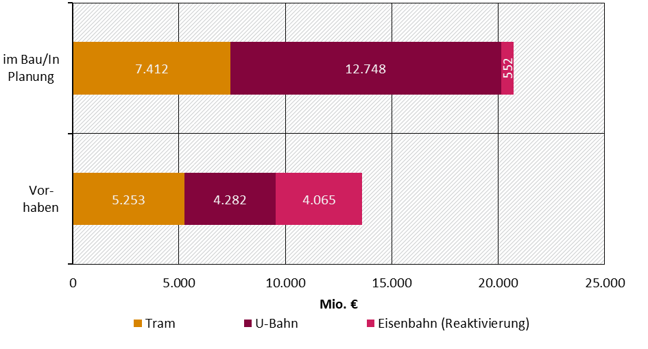 In jedem Fall gibt es aufgrund des Mischbetriebs von Personen- und Güterverkehr bzw. Fern- und Nahverkehr nahezu keine echten Aufteilungen der Mittel für Neu- und Ausbau. Diese lassen sich lediglich anhand der Einzelmaßnahmen behelfsmäßig abschätzen. Deshalb sind die nachfolgend als „SPNV-Anteil“ bezeichneten Mittelvolumina keine offiziellen Werte, sondern basieren auf einer gutachterlichen, vereinfachten qualitativen Abschätzung dessen, in welchem Nutzenwert eine Maßnahme dem SPNV zugutekommt. Wesentlich für die Einschätzung ist die Nutzung einer Strecke von Fern-, Nah- und Güterverkehr (so ist auf einer Schnellfahrstrecke kein oder kaum SPNV-Nutzen erkennbar, während der Ausbau eines Bahnknotens einen hohen Wert auch für den SPNV hat). Für 2019 wurde somit im Rahmen dieses Vorhabens auf Basis der Ausgaben für Bedarfsplanmaßnahmen desselben Jahres ein Wert von ca. 360 Mio. € ermittelt.